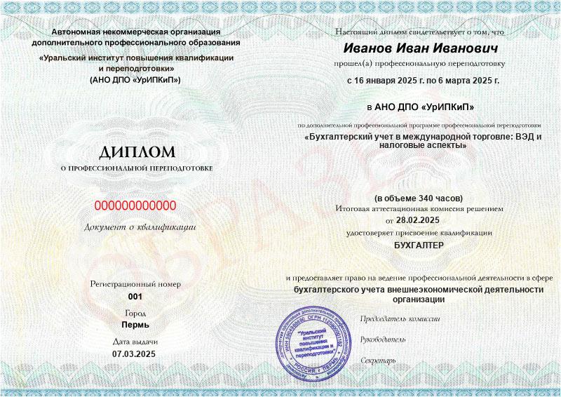 Курс обучения Бухгалтерский учет в международной торговле: ВЭД и налоговые аспекты (340ч)