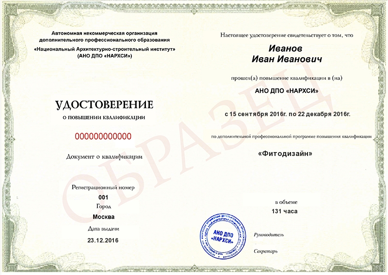 Учебный план программы повышения квалификации «Фитодизайн»