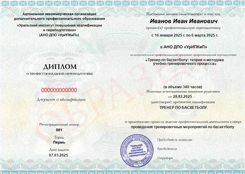 - Образец диплома о профессиональной переподготовке.