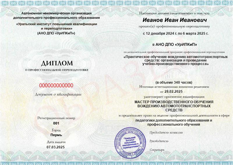 Да, дипломы и удостоверения оформляются в соответствии с действующим законодательством РФ. Документы печатаются на специальных бланках, заверяются печатью АНО ДПО «УрИПКиП».