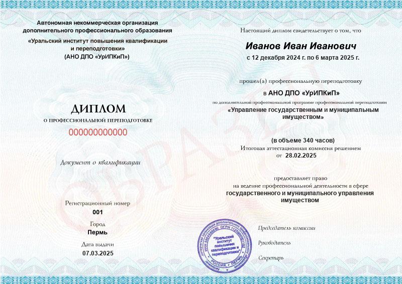 Курс обучения Управление государственным и муниципальным имуществом (340ч)